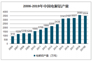 2006-2019年中國(guó)電解鋁產(chǎn)量