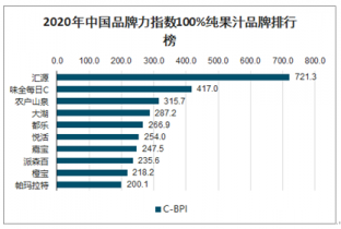 2020年中國品牌力指數(shù)100%純果汁品牌排行榜