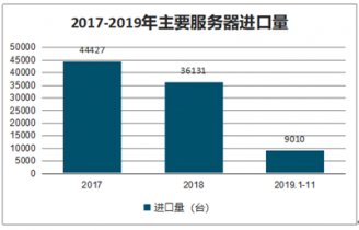 2018年,主要服務(wù)器進(jìn)口量為36131臺(tái),同比下降18.7%。;2019年1-11月,中國(guó)主要服務(wù)器進(jìn)口量為9010臺(tái),預(yù)測(cè)2019年主要服務(wù)器進(jìn)口量降幅達(dá)到72.8%。