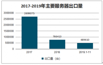 2018年,主要服務(wù)器出口量為766413臺(tái),同比下降71.6%,2019年1-11月,中國(guó)主要服務(wù)器出口量為489610臺(tái),預(yù)測(cè)2019年主要服務(wù)器出口量降幅達(dá)到30.3%。