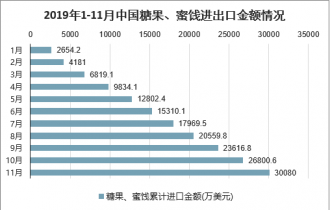 2019年1-11月中國(guó)糖果、蜜餞進(jìn)出口金額情況