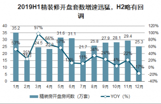 2019H1精裝修開(kāi)盤(pán)套數(shù)增速迅猛,H2略有回調(diào)