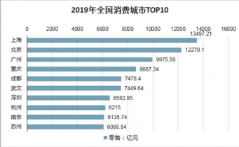 2019年消費能力十強城市社會消費品零售總額合計84360億元,占去年全國消費總量(411649億)的五分之一。