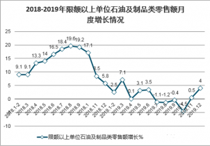 2019年限額以上單位石油及制品類零售額實現(xiàn)20042億元,累計增長1.2%,增速較1-11月份加快0.2個百分點,較上年大幅放緩12.1個百分點。其中,12月份石油及制品零售額同比增長4%,增速較11月份加快3.5個百分點。