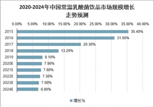 未來5年內(nèi),隨著宏觀經(jīng)濟增長趨緩、常溫乳酸菌飲品市場逐步飽和,常溫乳酸菌飲品市場增速將有所放緩,預計至2024年,國內(nèi)常溫乳酸菌飲品市場有望達211.9億元。