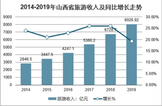 2014-2019年山西省旅游收入及同比增長(zhǎng)走勢(shì)