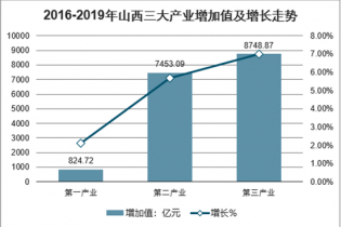 2016-2019年山西三大產業(yè)增加值及增長走勢