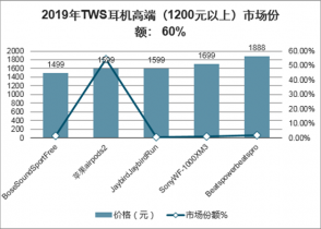 2019年TWS耳機(jī)高端(1200元以上)市場份額:60%