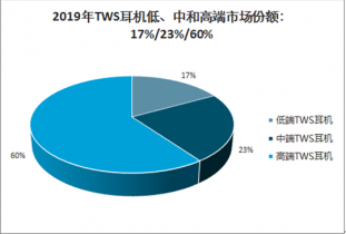 2019年TWS耳機(jī)低、中和高端市場份額:17%/23%/60%