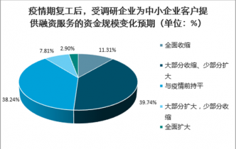疫情期復(fù)工后,受調(diào)研企業(yè)為中小企業(yè)客戶提供融資服務(wù)的資金規(guī)模變化預(yù)期(單位:%)