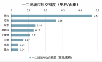 一二線城市軌交密度(里程/面積)