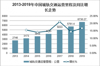 2013-2019年中國城軌交通運(yùn)營里程及同比增長走勢(shì)