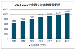 2013-2019年中國(guó)女裝市場(chǎng)規(guī)模趨勢(shì)