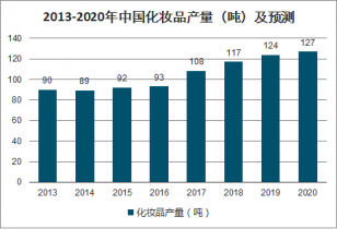 2013-2020年中國化妝品產(chǎn)量(噸)及預測