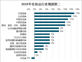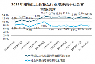 2019年限額以上化妝品行業(yè)增速高于社會(huì)零售額增速