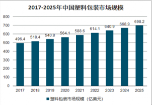 2017-2025年中國塑料包裝市場規(guī)模(億美元)