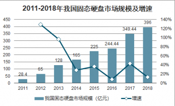 2011-2018年我國固態(tài)硬盤市場(chǎng)規(guī)模及增速
