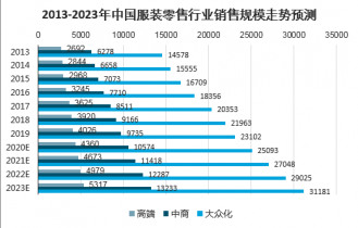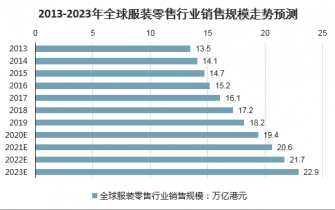 2013-2023年全球服裝零售行業銷售規模走勢預測