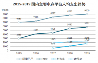 2015-2019 國(guó)內(nèi)主要電商平臺(tái)人均支出趨勢(shì)