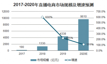 2017-2020年直播電商市場(chǎng)規(guī)模及增速預(yù)測(cè)
