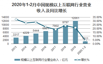 2020年1-2月中國規(guī)模以上互聯(lián)網(wǎng)行業(yè)營業(yè)收入及同比增長