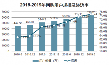 2016-2019年網(wǎng)購用戶規(guī)模及滲透率