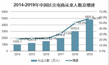 2014-2019年中國社交電商從業(yè)人數(shù)及增速