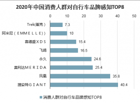 2020年中國(guó)消費(fèi)人群對(duì)自行車品牌感知TOP8
