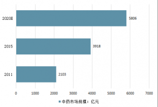 2015年中國中藥的市場規(guī)模為3918億元,占中國醫(yī)藥市場的32.1%。2011-2015年,中國中藥市場規(guī)模的復(fù)合增長率為16.8%,遠(yuǎn)高于GDP的增速。2016-2020年,中國中藥行業(yè)仍將快速發(fā)展,到2020年市場規(guī)模將達(dá)5806億元,復(fù)合增長率為8.2%,將繼續(xù)快于GDP的增速。預(yù)計2019年我國中藥市場規(guī)模將達(dá)5376億元,2020年中藥市場的銷售額將會占整個醫(yī)藥市場的32.4%,基本與2015年持平。