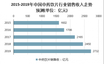 2015-2019年中國中藥飲片行業銷售收入走勢預測(單位:億元)