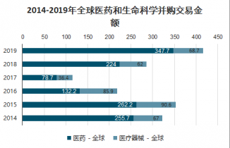 2014-2019年全球醫(yī)藥和生命科學并購交易金額