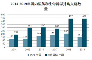 2014-2019年國內(nèi)醫(yī)藥和生命科學并購交易數(shù)量