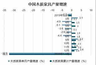 中國木質(zhì)家具產(chǎn)量增速