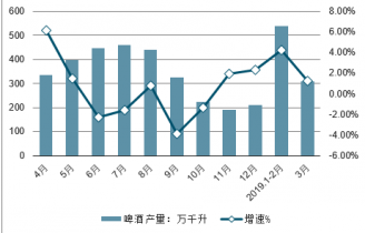 2018-2019年中國(guó)啤酒產(chǎn)量及增長(zhǎng)走勢(shì)