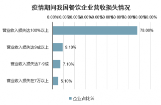 數(shù)據(jù)顯示,疫情期間,78%的餐飲企業(yè)營業(yè)收入損失達100%以上;9%的企業(yè)營收損失達到九成以上;7%的企業(yè)營收損失在七成到九成之間;營收損失在七成以下的僅為5%。根據(jù)估算,餐飲行業(yè)零售額僅在7天內(nèi)就會有5000億元的損失,可謂損失慘重。