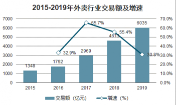 2018年中國外賣產(chǎn)業(yè)交易額為4614億元,同比增長55.4%;2019年外賣規(guī)模則超過6000億元,達到6035億元,漲幅為30.8%。外賣在消費中的作用進一步凸顯,其給餐飲行業(yè)注入了新動能。