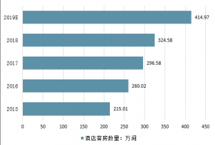 根據(jù)中國飯店協(xié)會發(fā)布的2015年至2019年《中國酒店連鎖發(fā)展與投資系列報告》中的數(shù)據(jù)整理,我國酒店行業(yè)供給持續(xù)增長,中國酒店客房數(shù)量從2015年的215.01萬間增長到了2019年的414.97萬間,期間的年均復合增長率為17.87%。