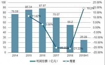 2014-2019H1中國金屬包裝容器制造業(yè)利潤總額及增速趨勢