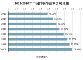 2013-2020年中國網(wǎng)購滲透率走勢預(yù)測