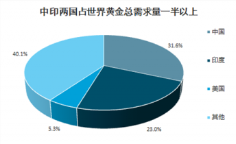 我國(guó)黃金需求量位于世界前列。中國(guó)是世界黃金需求量第一大國(guó),消費(fèi)、投資偏好較強(qiáng)。按黃金首飾、金幣金條口徑計(jì),中國(guó)和印度在全球黃金消費(fèi)的占比分別為32%和23%,其他國(guó)家的占比則較低。