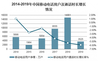 2014-2019年中國移動電話用戶及通話時長增長情況
