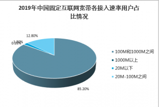 2019年中國固定互聯網寬帶各接入速率用戶占比情況
