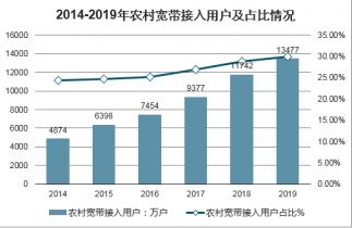 截至2019年12月底,全國農村寬帶用戶全年凈增1736萬戶,總數達1.35億戶,比上年末增長14.8%。