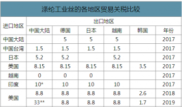 滌綸工業(yè)絲的各地區(qū)貿(mào)易關(guān)稅比較