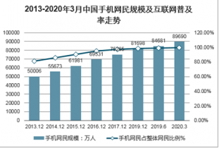 2013-2020年3月中國手機(jī)網(wǎng)民規(guī)模及互聯(lián)網(wǎng)普及率走勢