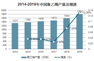 2014-2019年中國(guó)聚乙烯產(chǎn)量及增速
