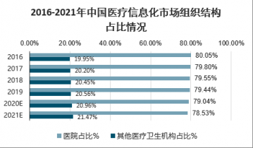 2016-2021年中國醫(yī)療信息化市場組織結(jié)構(gòu)占比情況