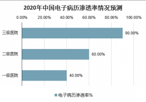 目前我國三級醫(yī)院總體電子病歷的水平停留在2.11級的水平上,且滲透率不過5%,因此判斷未來3年是我國電子病歷滲透率急速提升的時(shí)期。預(yù)計(jì)到2022年我國電子病歷三級醫(yī)院普及率將達(dá)到90%左右,二級醫(yī)院滲透率超過60%,一級醫(yī)院超過40%,接近日本和美國的水平。