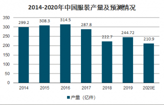 2014-2020年中國(guó)服裝產(chǎn)量及預(yù)測(cè)情況
