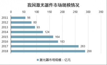 2018年激光元部件市場規模達到288億元,2018年下游加工服務市場規模超過500億元。